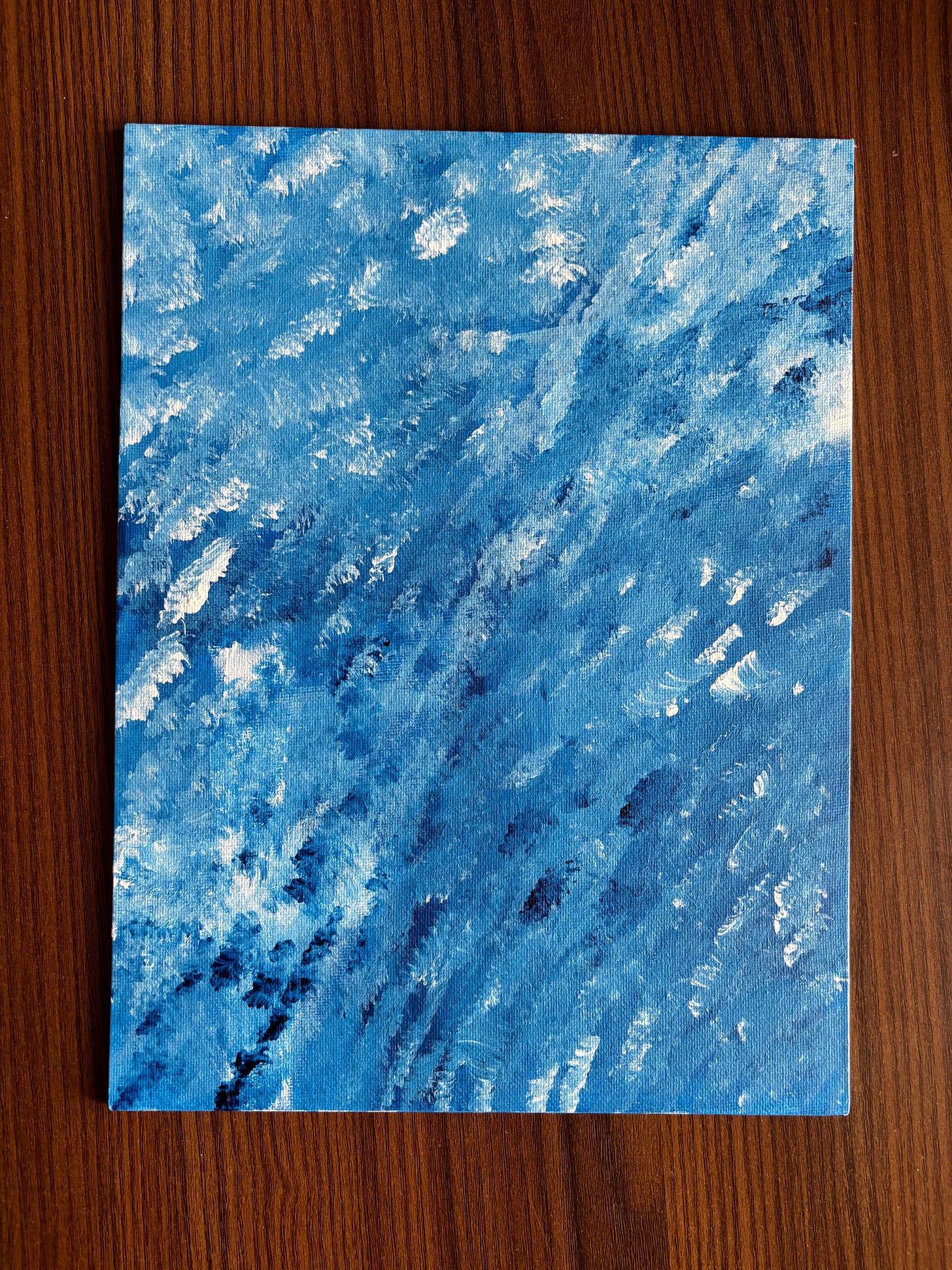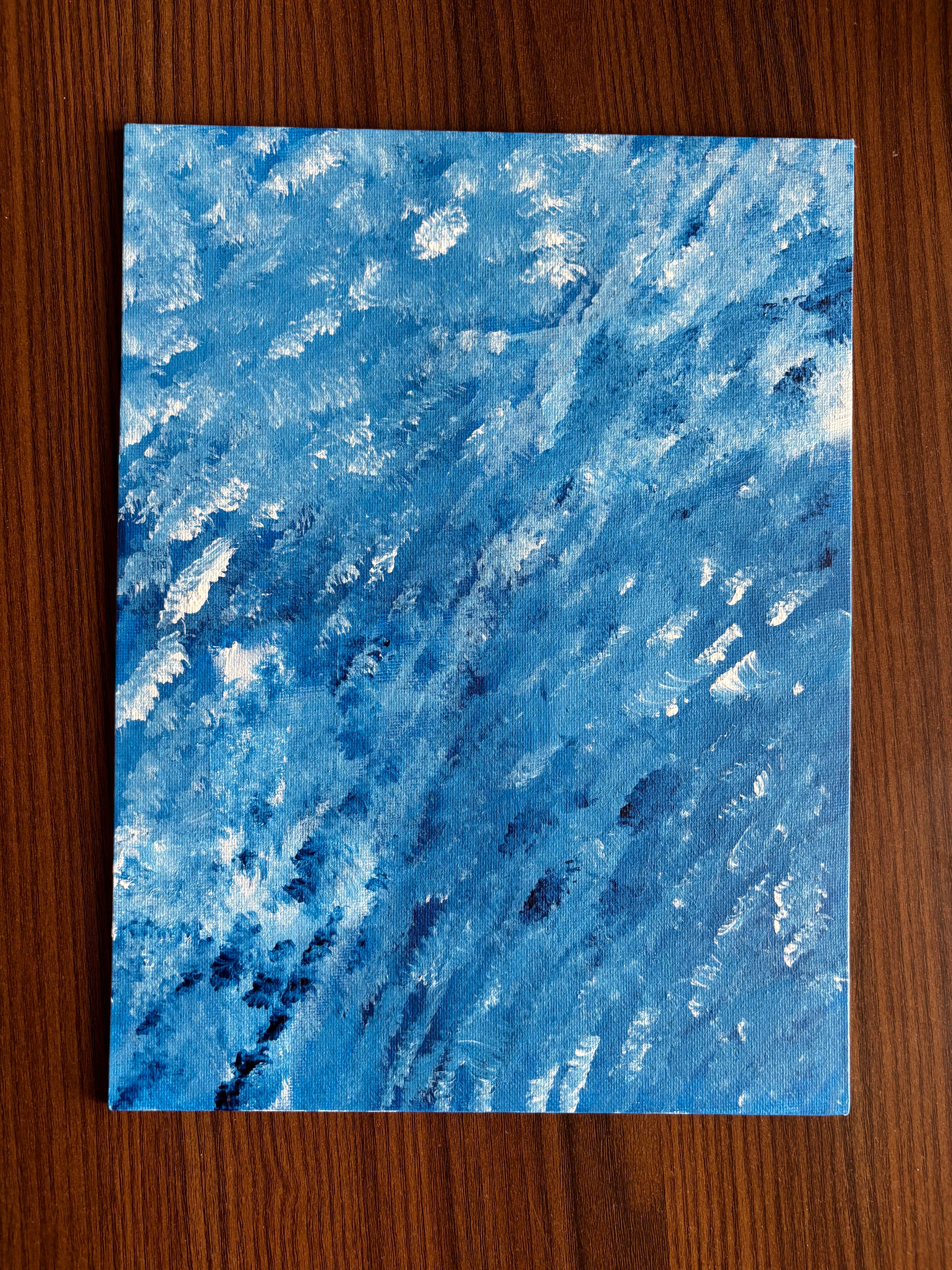 I only break out my painting easel about once or twice a month, but when I do, I sit and let whatever come to mind become the project. I don’t plan. I don’t try to paint any complex objects. Just simple stuff like patterns, gradients. This painting above is an interpretation of ocean waves.