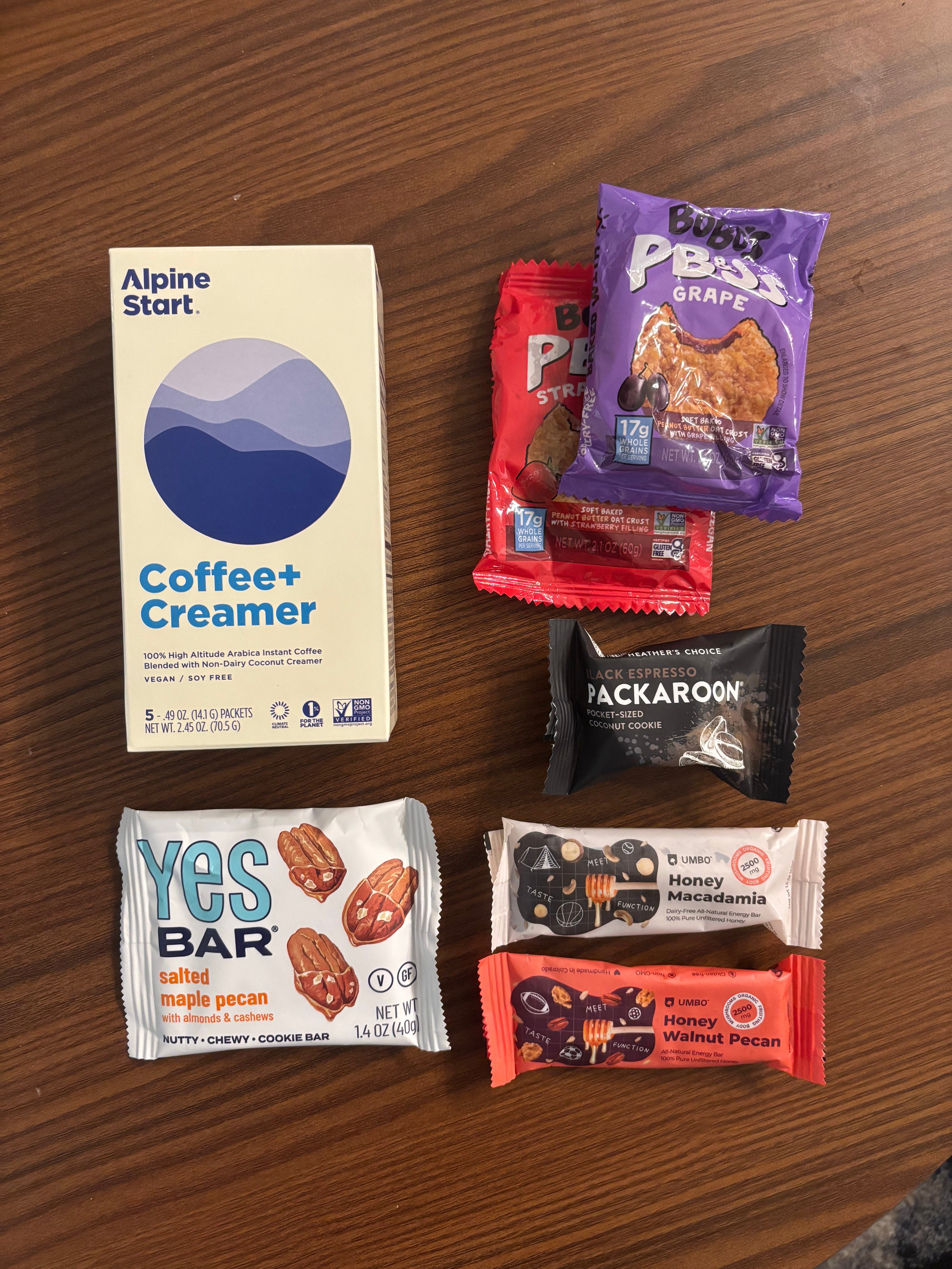 One ritual I’ve started in order to help avoid junk food at the airport and on flights is stocking up on healthy snacks at REI.