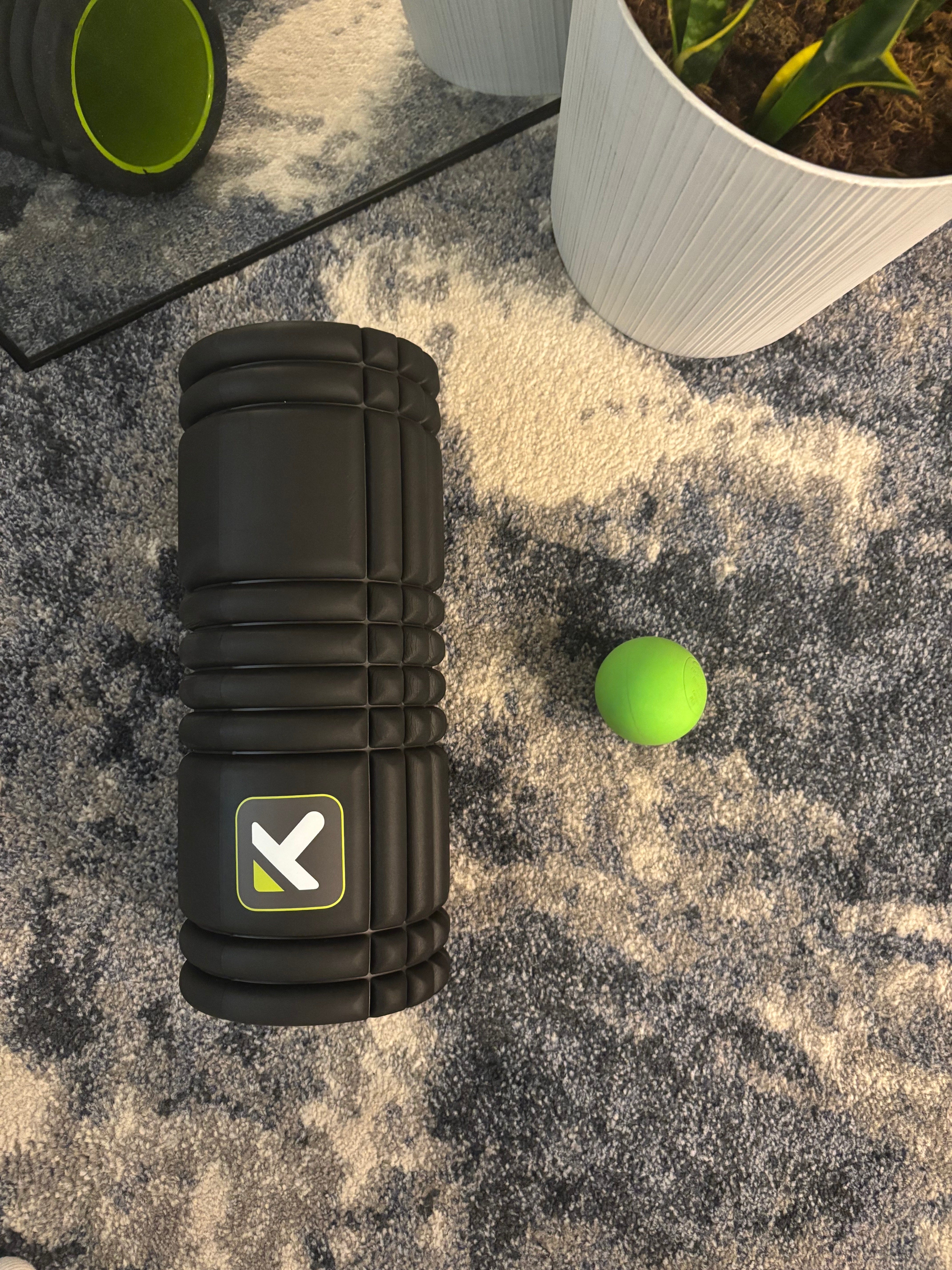 So every morning now I roll a lacrosse underneath each foot gently to activate the muscles. Then, at some point throughout the day, I commit to foam rolling my quads, hamstrings, calves, and back. It’s not always in the morning. A lot of times it’s before and after workouts. Sometimes right before bed.